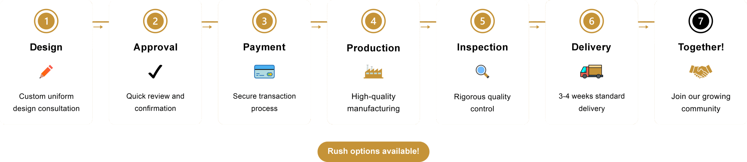 State-of-the-art production, premium fabrics, and strict quality checks ensure uniforms meet professional standards.